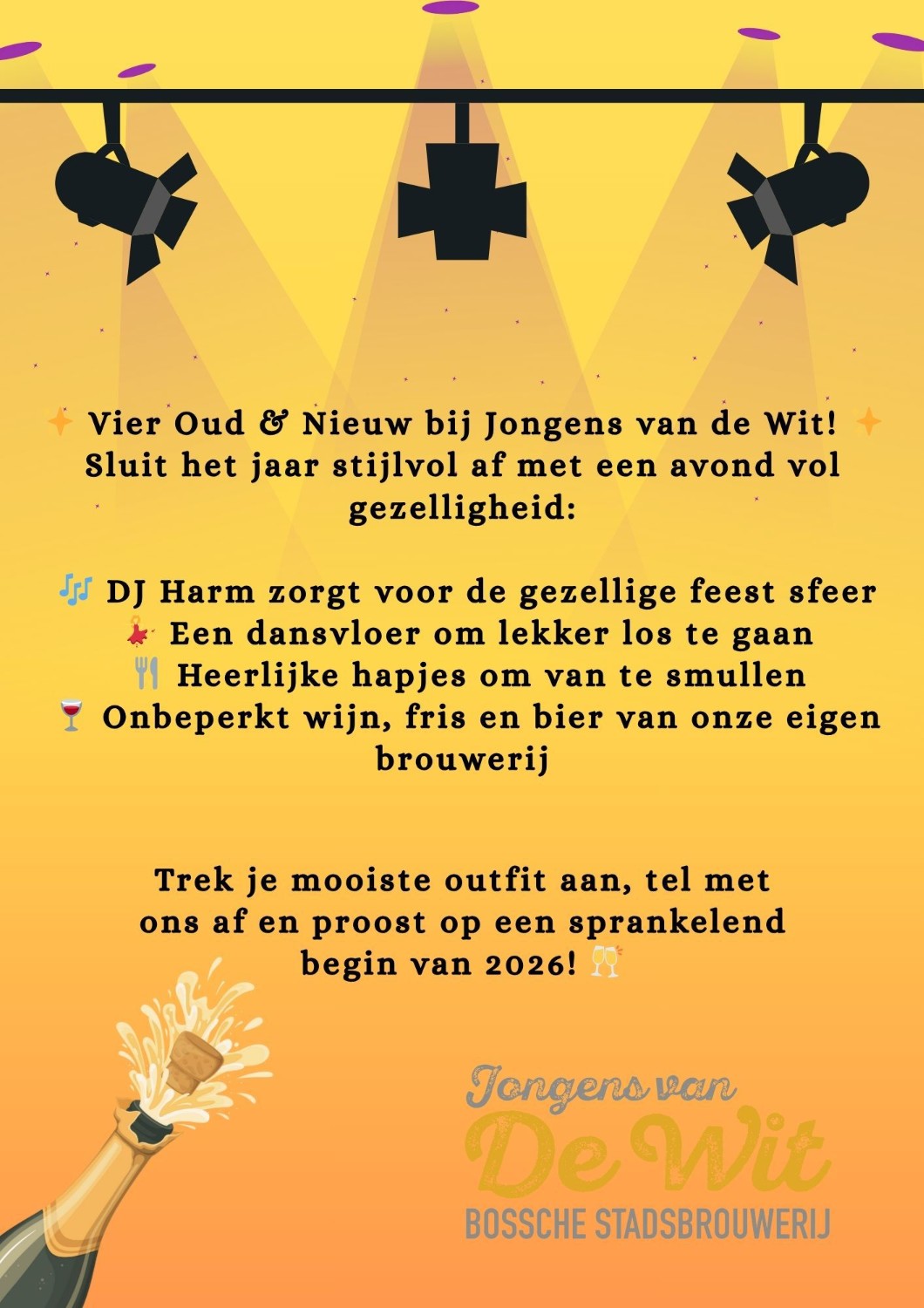 Ook dit jaar is er weer een Oudejaarsfeest bij Jongens van de Wit. Dé plek om samen met buurtgenoten het nieuwe jaar feestelijk in te luiden. Maar ook introducees en andere belangstellenden zijn welkom.